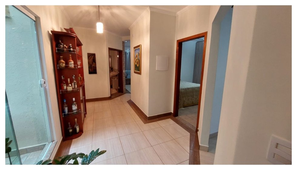 Belíssima cosa com a construção e acabamento de primeira qualidade com 03 dormitórios amplos sendo 02 suítes e todos com armários embutidos / Sala / Banheiro social / Ampla cozinha com armários e mais uma área gourmet anexa a cozinha / Lavanderia / Banheiro / Quintal com pomar / Piscina / Outra área gourmet nos fundos / Jardim na parte da frente / Ótima localização /
