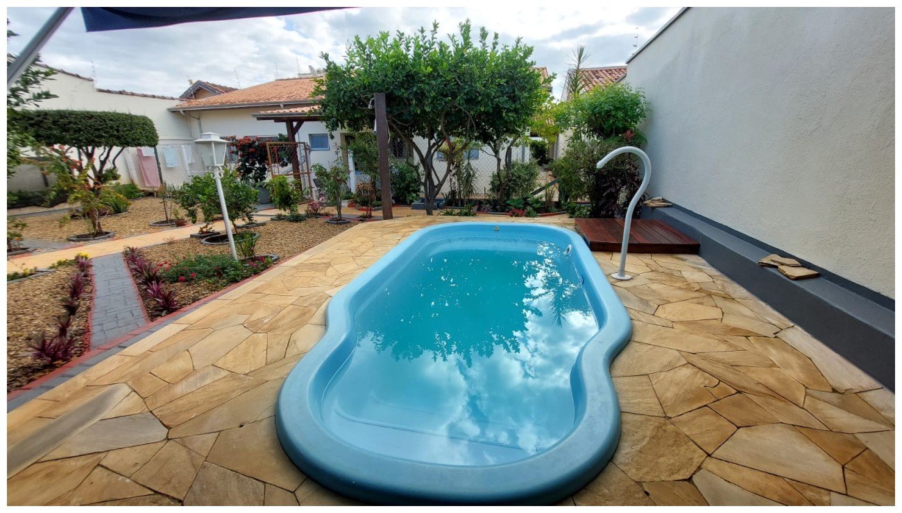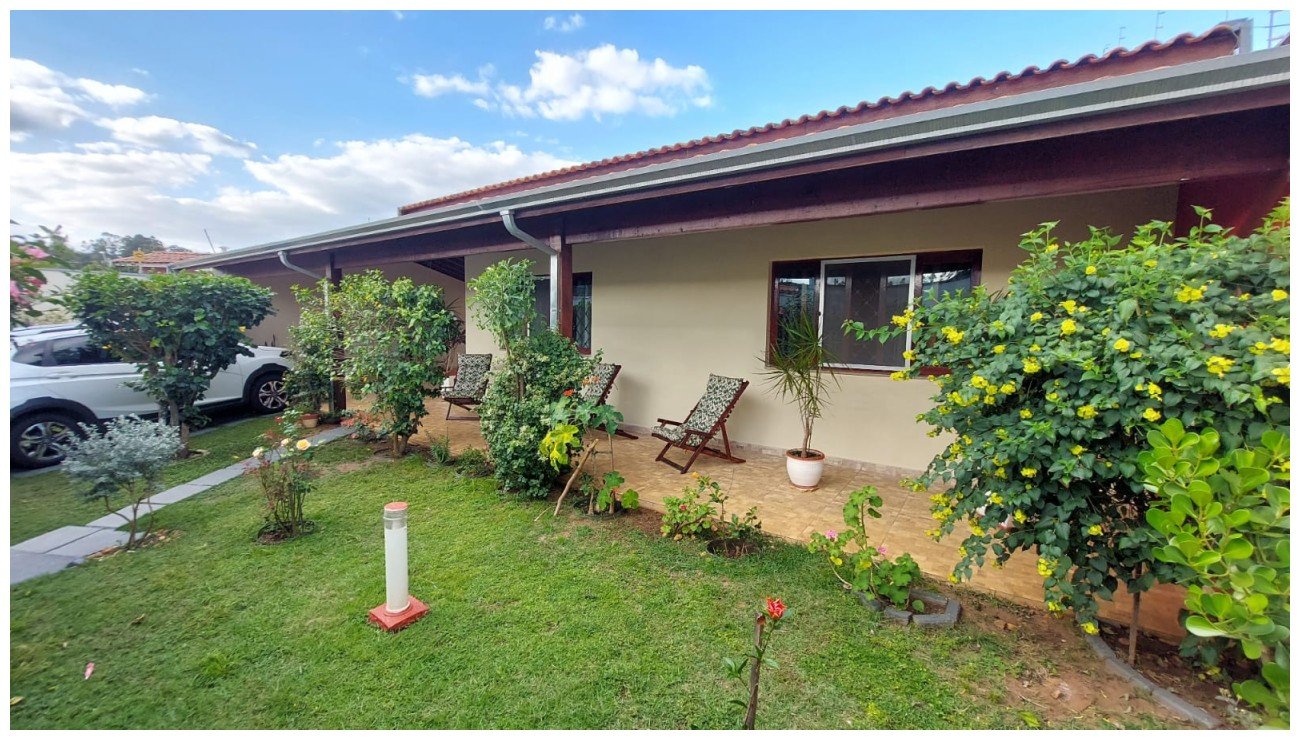 Belíssima cosa com a construção e acabamento de primeira qualidade com 03 dormitórios amplos sendo 02 suítes e todos com armários embutidos / Sala / Banheiro social / Ampla cozinha com armários e mais uma área gourmet anexa a cozinha / Lavanderia / Banheiro / Quintal com pomar / Piscina / Outra área gourmet nos fundos / Jardim na parte da frente / Ótima localização /